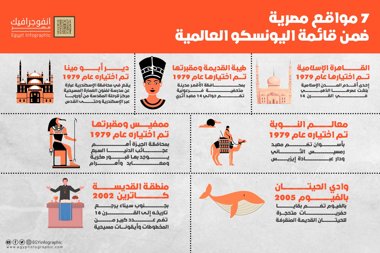 سبعة مواقع مصرية ضمن قائمة اليونسكو العالمية